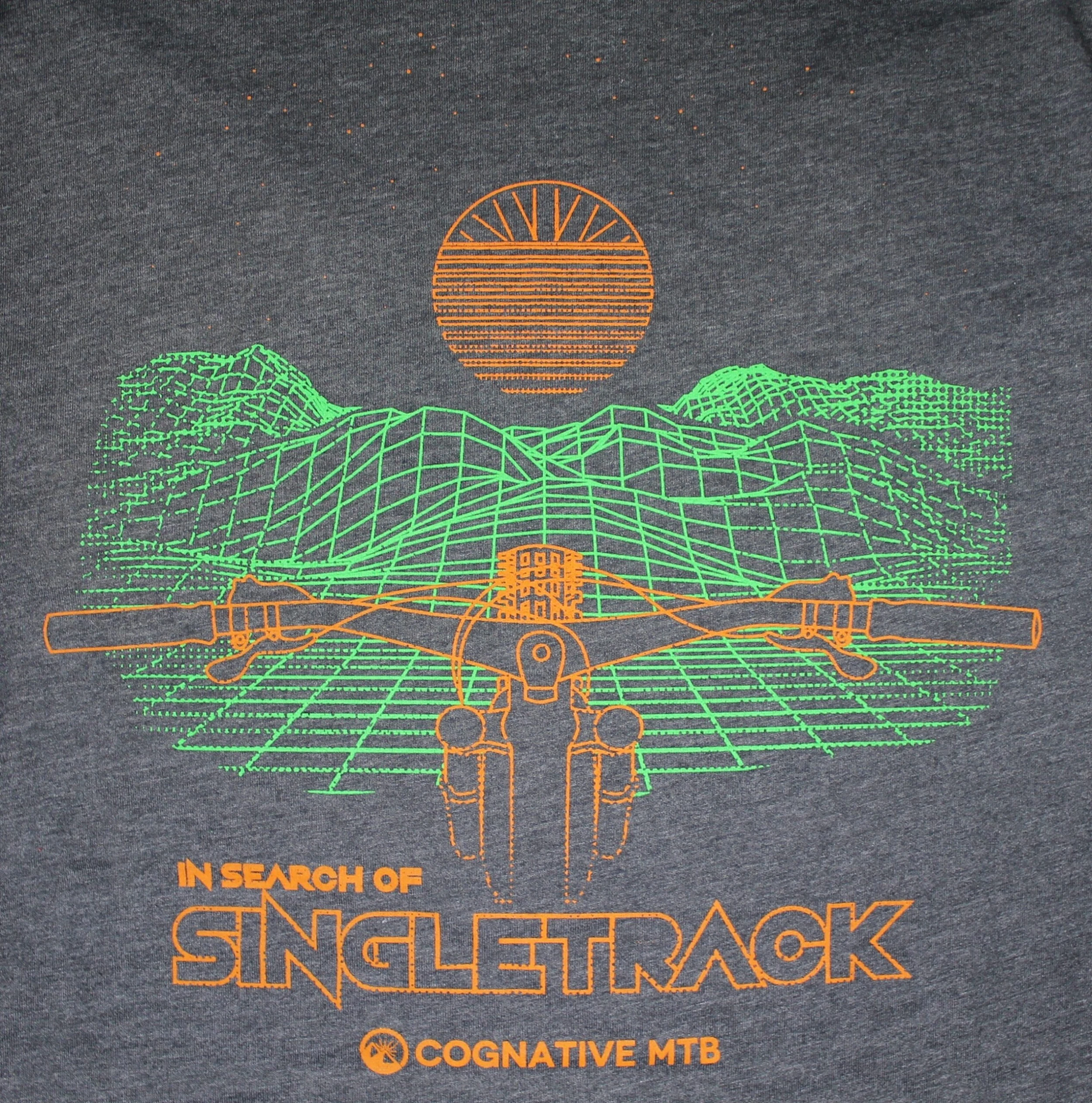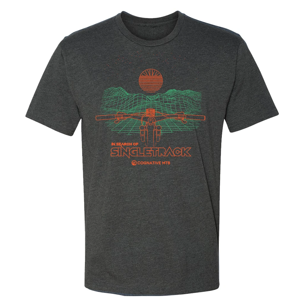 Embark on digital trails, echoing the 1982 film Tron, with our “In Search of Singletrack” collection. Discover uncharted routes and new horizons while paying homage to the thrill of the ride and an iconic movie. This t-shirt effortlessly blends comfort, softness, and lasting durability – everything you could want in a tee.