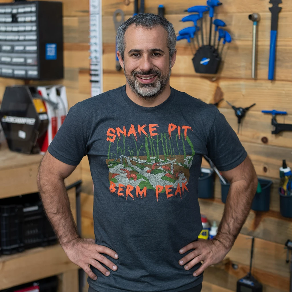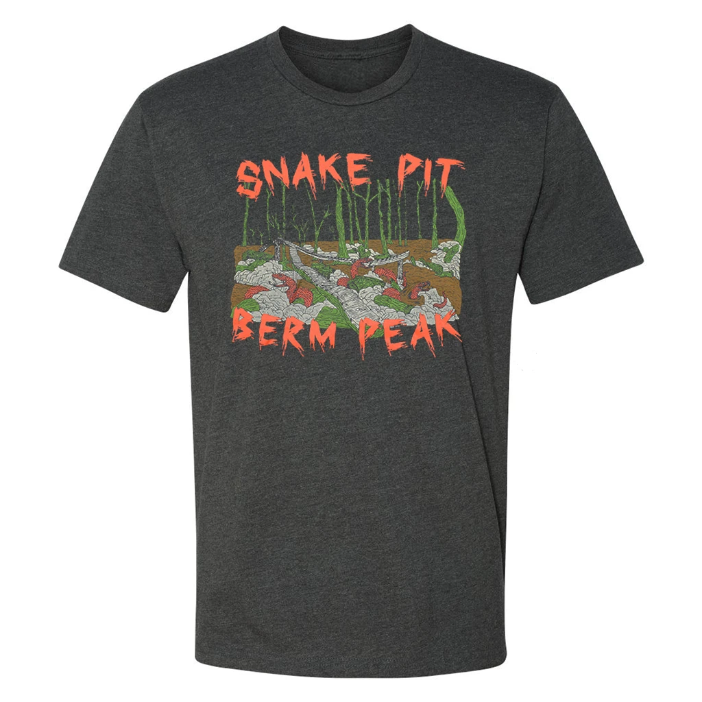 A heavy metal inspired design highlighting one of Berm Peak’s most famous (and dangerous) features: the Snake Pit skinny!