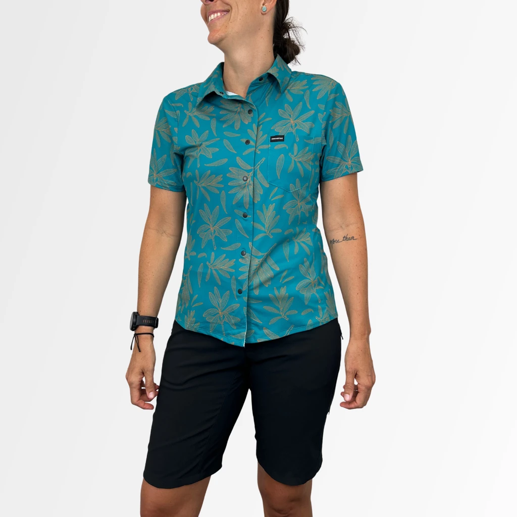Introducing the Women’s Catalyst Mountain Bike Button-Down Shirt in Rhodo Teal: The Ultimate Blend of Style and Performance! Don’t stress over the button down vs. button up debate—labels don’t matter when you have a shirt as incredible as the Catalyst! It’s a button-down shirt with a twist—it’s actually a high-performance jersey in disguise, combining classic charm with functionality. Packed with features like a front stash pocket, a built-in lens wipe, and strong reinforced snaps, this 100% recycled shirt is perfect for your cycling adventures. Experience a natural cooling sensation with 6% Silver Ion content and bid farewell to odors with silver-based antimicrobial control. Get ready to ride in style and comfort, ladies!