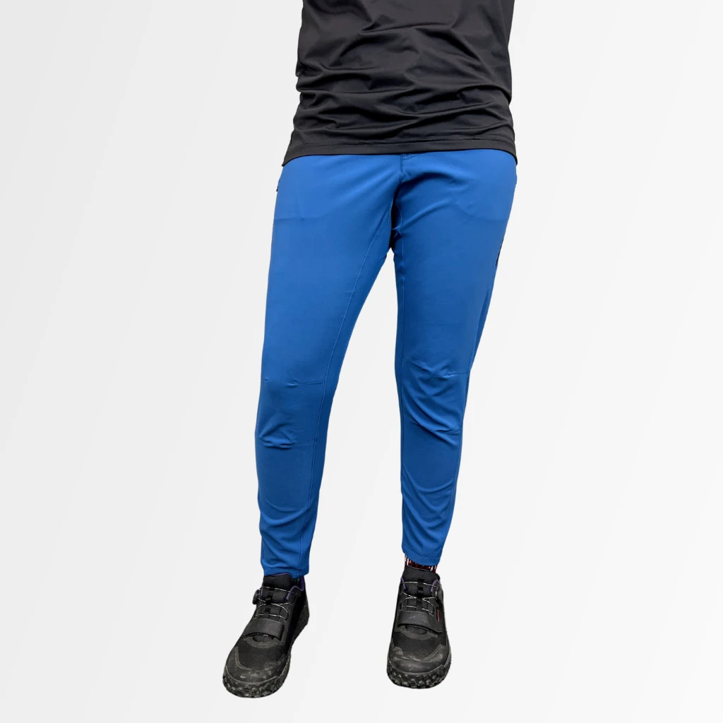 Looking for the ultimate mountain bike pants that will keep you comfortable and stylish on any ride? Look no further than the Women’s Guide Trail MTB Pants in indigo blue – designed specifically for women. Our pants feature a perfect fit with trail-ready features, including 4-way stretch material, a performance taper cut, and an adjustable hook and webbing waistband. Two large zippered pockets are placed precisely on each leg, offering secure phone storage without adding extra bulk. With a gusseted crotch and articulated knees, these pants deliver freedom of movement across the saddle, while stretch panels in the back keep you comfortable on any climb or descent.